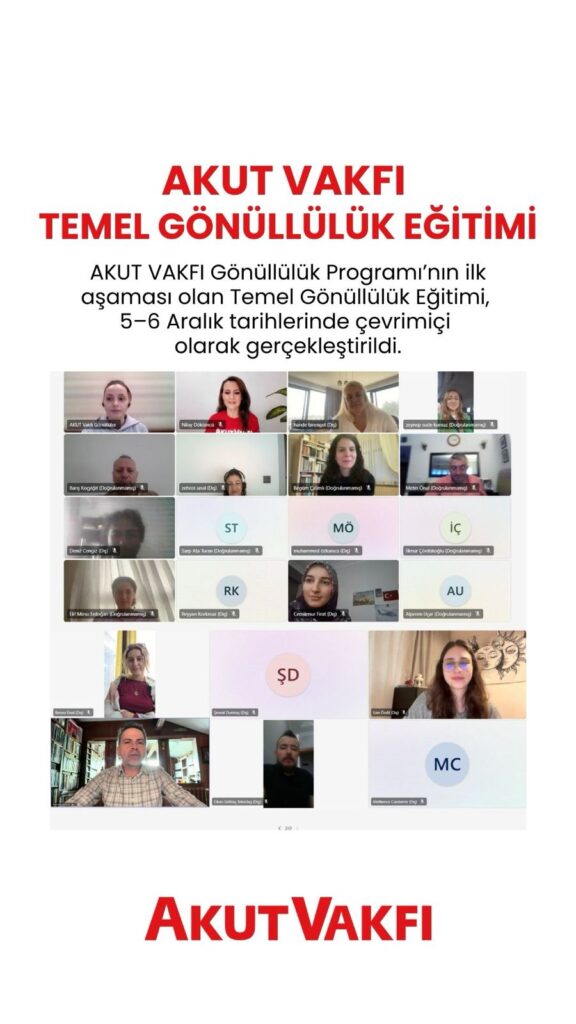 AKUT VAKFI resmi internet sitesi üzerinden alınan başvuruların değerlendirilmesinin ardından, gönüllü adaylarına yönelik eğitim faaliyetleri gerçekleştirildi. Bu kapsamda, 5–6 Aralık tarihlerinde Temel Gönüllülük Eğitimi, 12–13 Aralık tarihlerinde ise Temel Afet Bilinçlendirme Semineri çevrimiçi olarak düzenlendi.